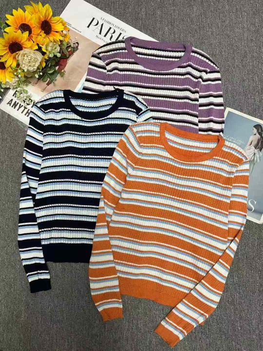 秋冬新款韩系撞色条纹减龄百搭针织套头毛衣,独立包装,均码面料柔软弹力大...