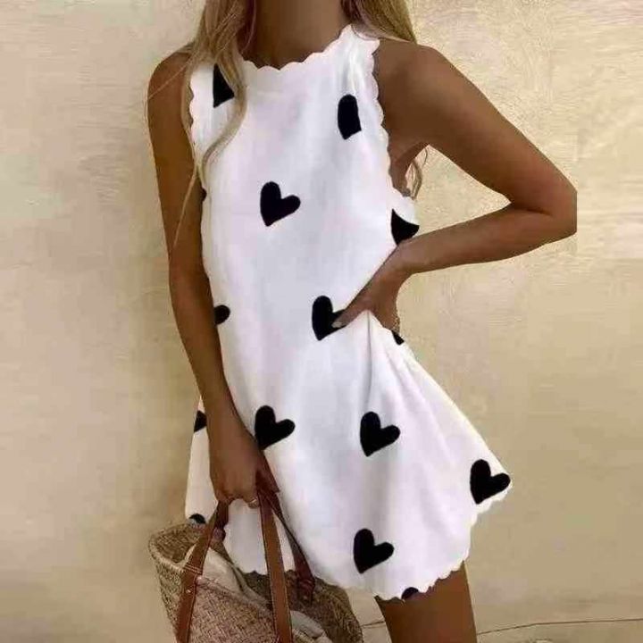 时尚爱心印花短款迷你圆领无袖连衣裙,品质好,数量 450 条,码数 S-2XL。 ...