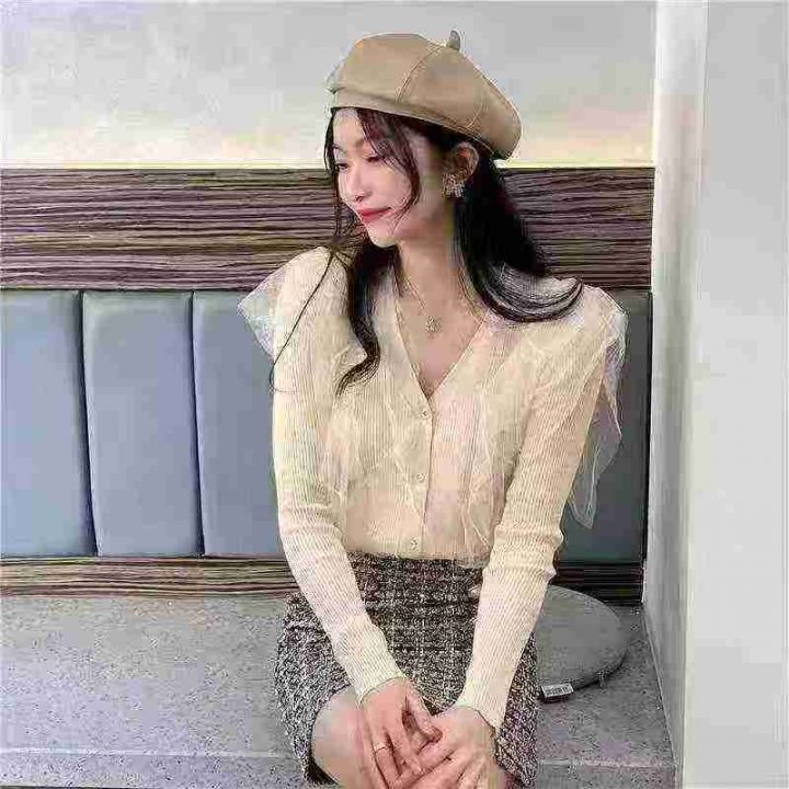 拼接网纱针织衫开衫修身显瘦网红靓妹毛衣打底小外套,独立包装,五个颜色,...