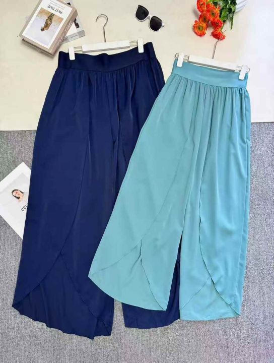 百搭显瘦高腰开叉冰丝休闲裤,整款两色,品质好,数量...