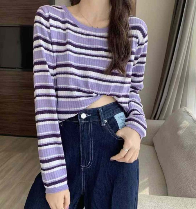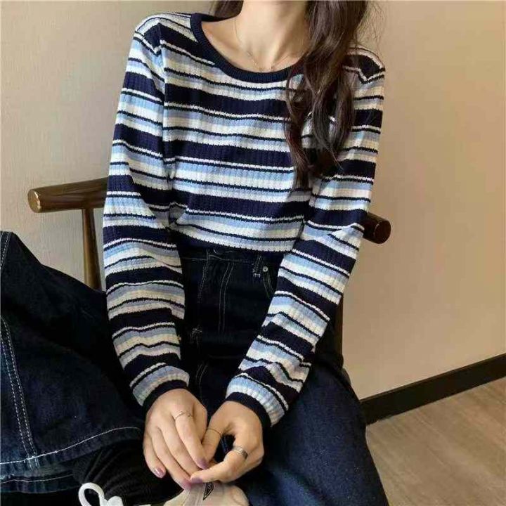 秋冬新款韩系撞色条纹减龄百搭针织套头毛衣,独立包装...