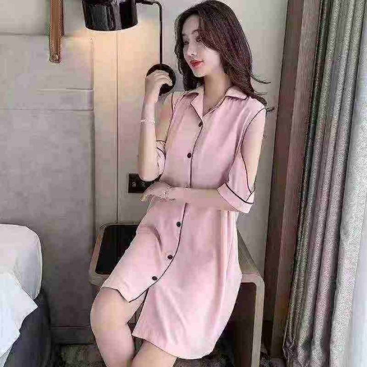① 网红冰丝性感露肩韩版宽松家居睡裙!独立包装,整...