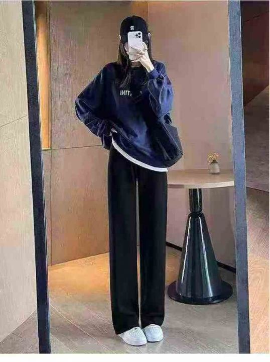 秋冬黑色运动加绒直筒休闲裤女,单款单色,面料厚实有...