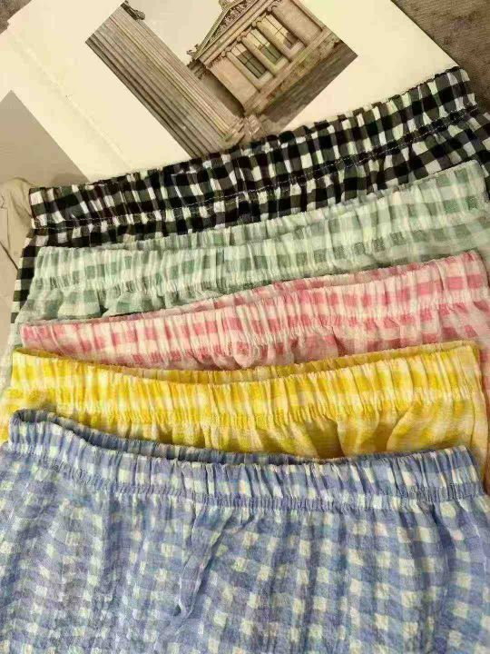 下身阔腿长裤[太阳]多巴胺格子裤白腰全清9.8,2800件,均码,价格优势实体...