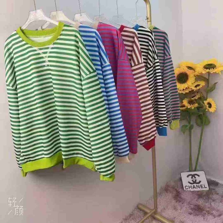 女装卫衣春秋季简约条纹圆领长袖款式套头拼色卫衣,码数S M L XL,独立包装货品干净,面料鱼鳞布舒服柔软,90件,全清7.8