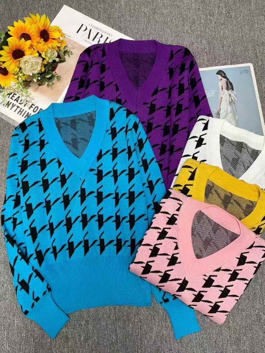 秋冬新款韩版宽松百搭提花V领套头毛衣,独立包装,均码面料软糯舒适弹力大...