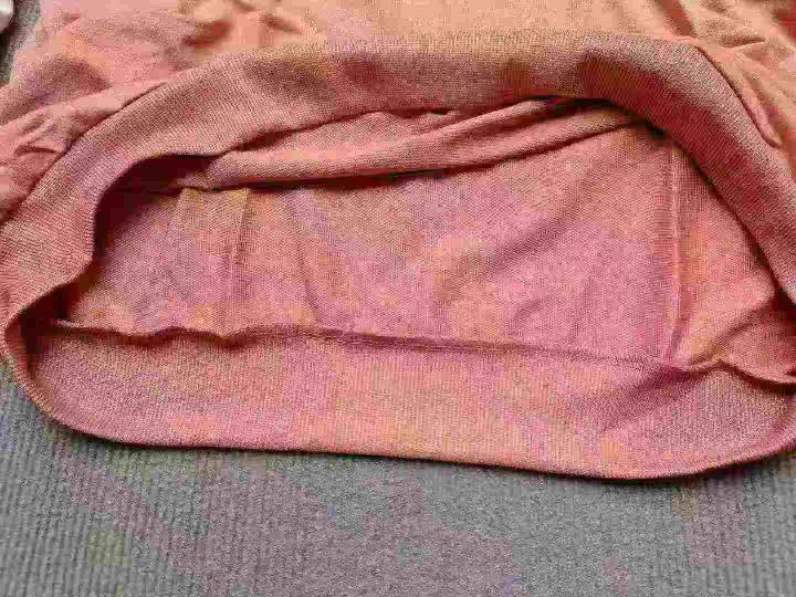 外贸原单春秋女士开衫提花西瓜红半袖中袖V领修身收腰百搭针织衫,高弹力,...