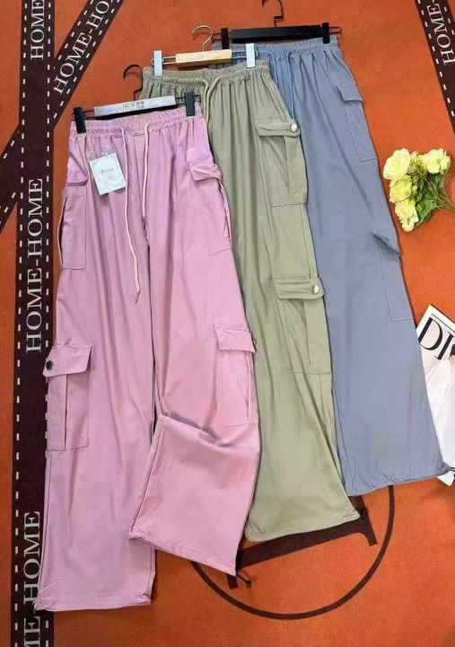 下身工装长裤[太阳]全清22.1,800件、均码春夏季抽绳松紧腰工装装高腰直筒多口袋宽松运动速干休闲工装裤,糖果色[哇],裤脚抽绳束口设计,一裤多穿️阔腿️束脚[色],品质,独立包装,带吊牌,100件起多色混配23.1
