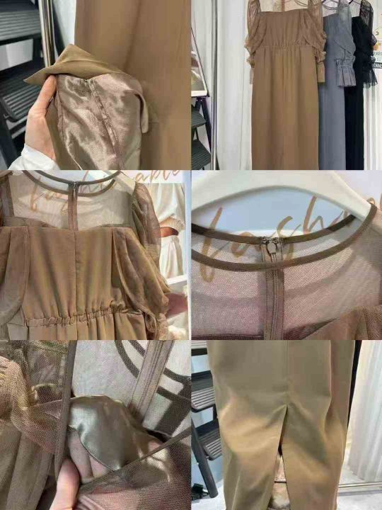 300条日单圆领拼接网纱微透喇叭袖收腰显瘦纯色开衩鱼尾连衣裙,质量超好!琉璃网纱微弹力不易勾丝,有内衬,尺码S-L,独立包装!全清17.8。 货号:24862