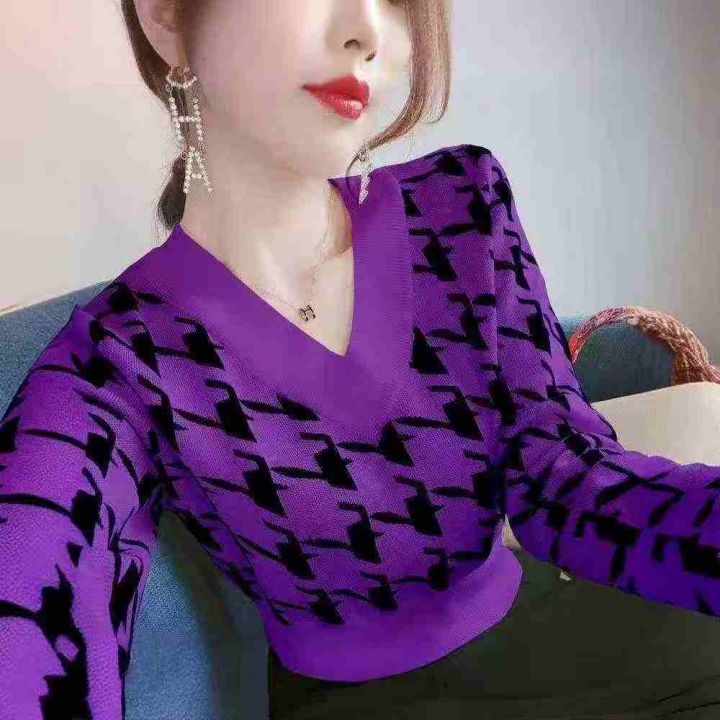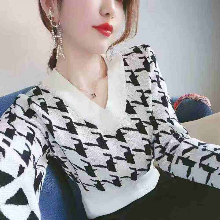 秋冬新款韩版宽松百搭提花V领套头毛衣,独立包装,均...