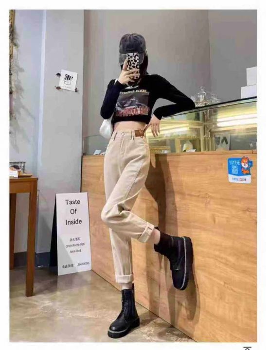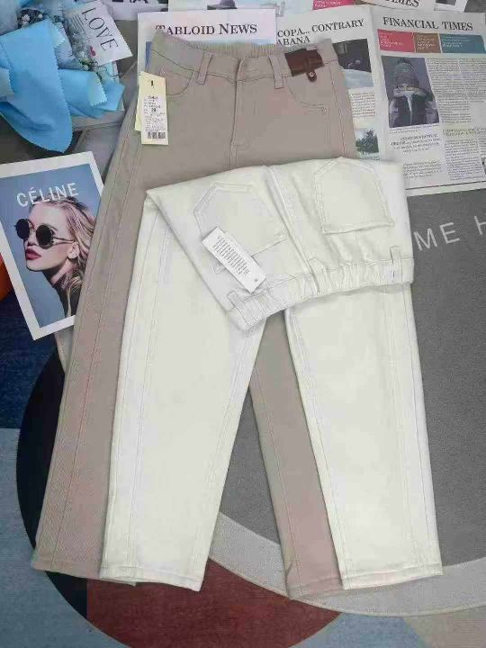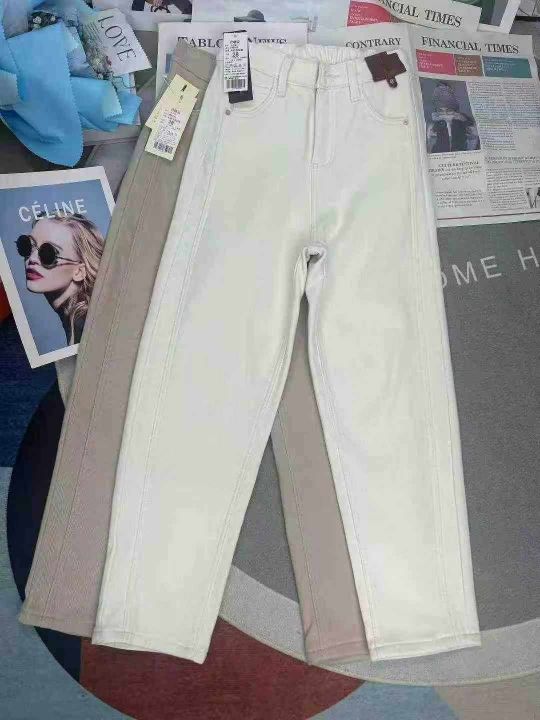 秋冬季宽松休闲老爹哈伦加绒弹力牛仔裤,整款2个颜色...