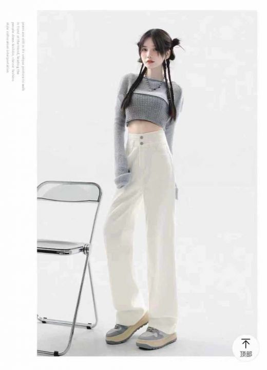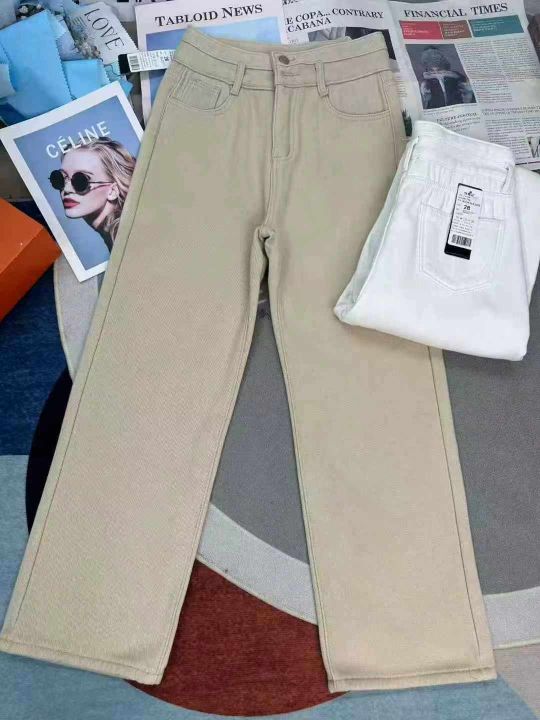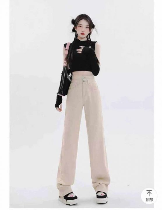 加绒款阔腿高腰宽垂感拖地牛仔裤,整款2个颜色,独立...