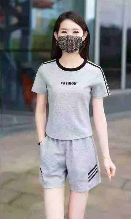 时尚休闲套装女时髦洋气短袖上衣短裤运动气质两件套,独立包装,码数4-6,数量212套,货号1122#48