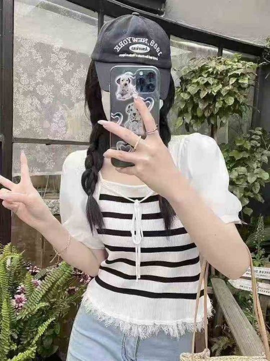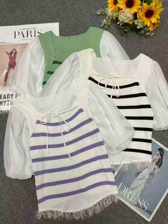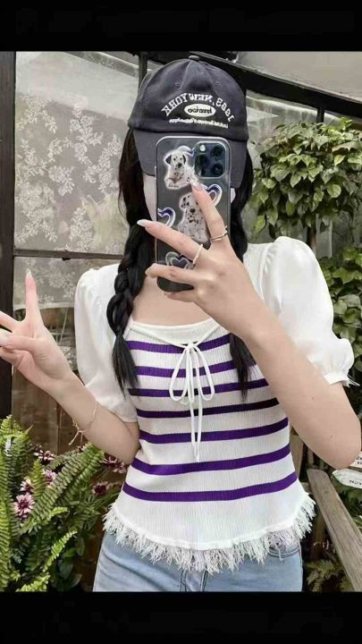 夏季新款假两撞色条雪纺袖拼接针织T桖,独立包装,均码面料柔软舒适弹力大,415件,全清6.9元超低价秒杀!分货加一!。 货号:1323