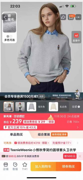 韩国TW维尼熊卫衣系列 3000件,毛圈。 货号:29...