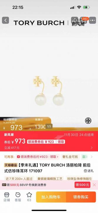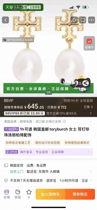 TORY BURCH 汤丽柏琦 原单耳环,设计师设计版,都是天...
