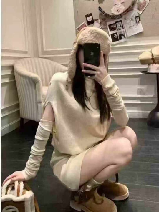 新款韩版可拆卸袖套连衣裙两件套3480套 面料厚实柔软 均码大弹力独立包装 大货杏色多 6.8清