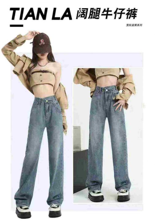 ☕️复古阔腿牛仔裤女春秋新款高腰垂感宽松直筒拖地裤...