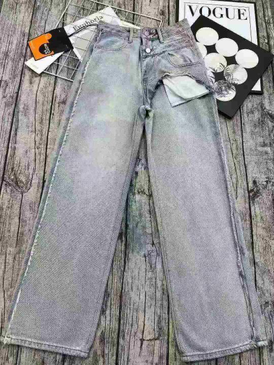 ☕️63033# 美式拼接毛边阔腿牛仔裤女秋季新款高腰宽松显瘦直筒长裤 350条全清14.8元 分货+1元