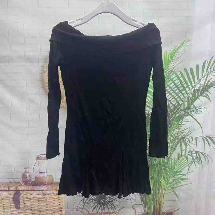 3.8元[庆祝][庆祝] 辣妹风修身一字领长袖连衣裙,独立包装,码数:L码,弹力很大,数量170件左右。