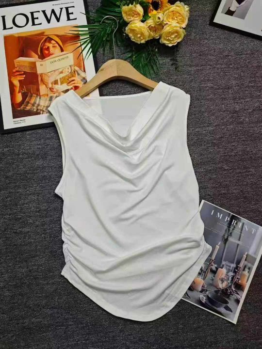 电商仓回收295件法式高级感精致荡领褶皱白色背心女,码数S-2XL。前长后短设计感,上身效果非常好,面料柔软有弹性,全部独立包装。分货+0.5