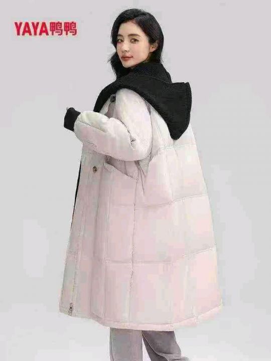 鸭鸭品牌中长款女士羽绒服,带针织围巾帽,三个码数大版型泡芙款,,只有一个颜色一百件左右,要的速度!