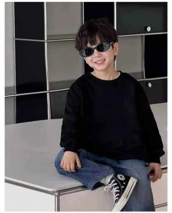 2.9清电商仓回收33件儿童百搭婴儿绒圆领黑色长袖套头上衣,码数90-140。内...
