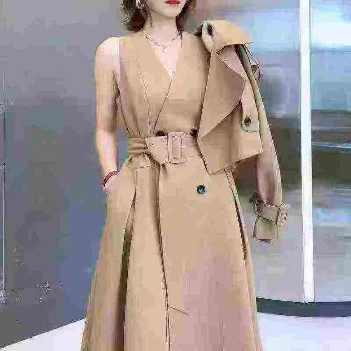 天猫仓回收73套温柔韩系成熟风优雅气质女士风衣连衣裙套装,码数L-4XL。两件套版型质量都很好,裙子有口袋,有独立包装。超低价秒杀!