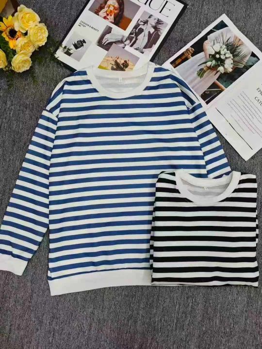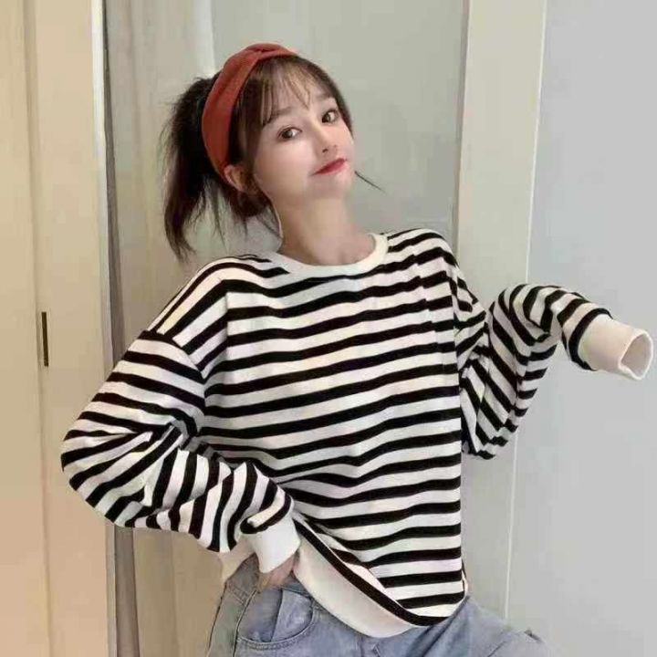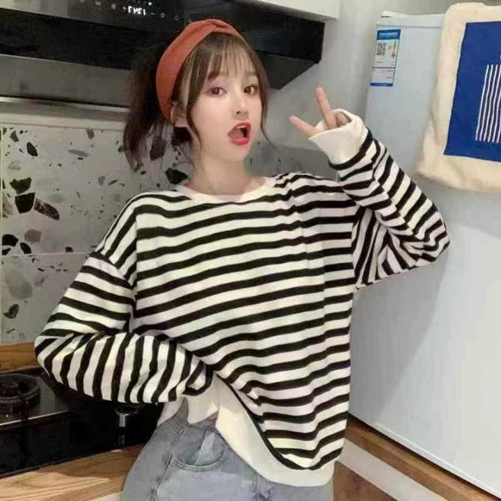 电商仓回收265件秋冬新款韩版撞色条纹休闲文艺长袖T恤卫衣女,码数s-xl,落肩版型,百搭显瘦不挑人,独立包装。分货➕0.5