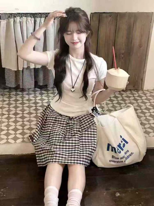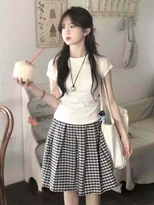 3.5清电商仓回收65件韩系风黑白格子短裙春夏薄款口袋...
