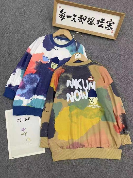 童装扎染卫衣154件3.9,面料柔软,后领包边,图案字母...