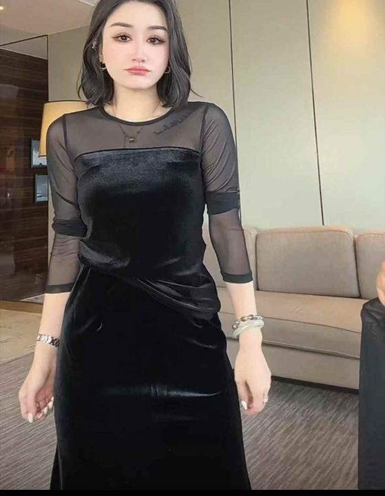 100多件2025秋网纱拼丝绒T恤打底衫女内搭性感小衫法式黑色长袖圆领上衣,均码,独立包装!全清8.8 不分货
