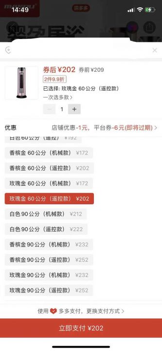 韩国现代暖风机 功率2000w拼多多上卖202元 颜色随机...