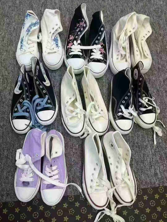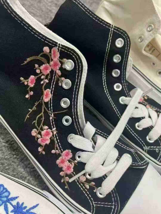 经典港风复古帆布鞋,花卉国潮刺绣匡威鞋,高端品质好货,深圳实体店货,款式新潮,质量上乘,数量130双,码数37-41,大部分都有配鞋盒,不分货