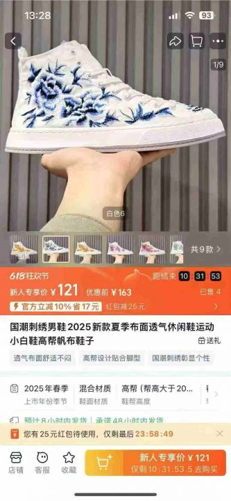 8.8元清经典港风复古帆布鞋,花卉国潮刺绣匡威鞋,高...