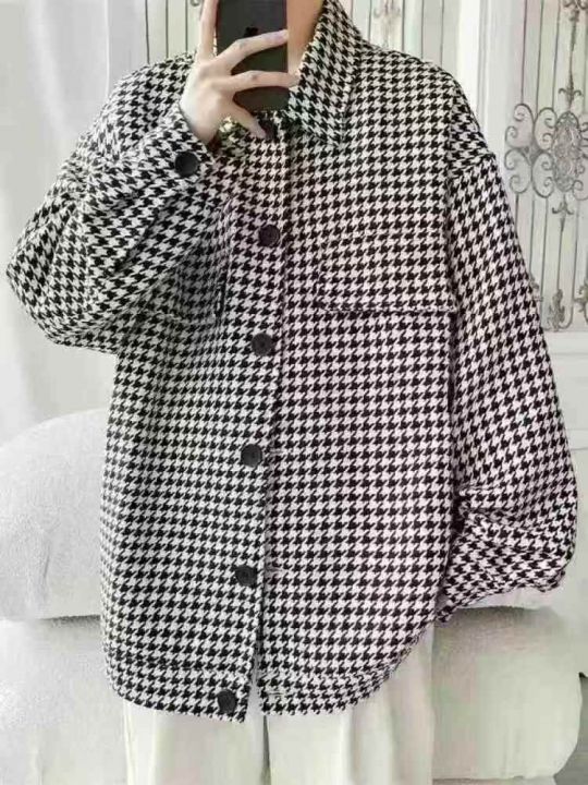 千鸟格ins潮牌工装外套宽松翻领,加绒大概1095,不加绒550,数量1645件,码数M-2XL,独立包装,全清6.9元,分货+0.5元(网络图仅参考)。 货号:1303