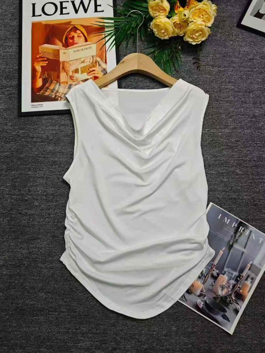 2.5清电商仓回收295件法式高级感精致荡领褶皱白色背心...