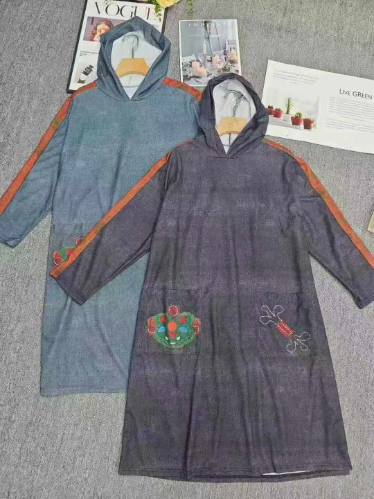 电商仓回收1003件仿牛仔复古小众慵懒风宽松胖MM连帽连衣裙,码数2-4-6码。面料透气舒适,上身宽松显瘦,对身材包容度高。有独立包装,分货➕1