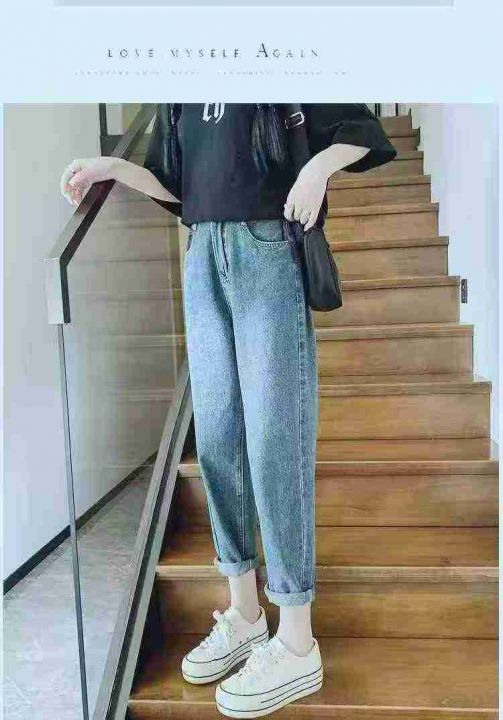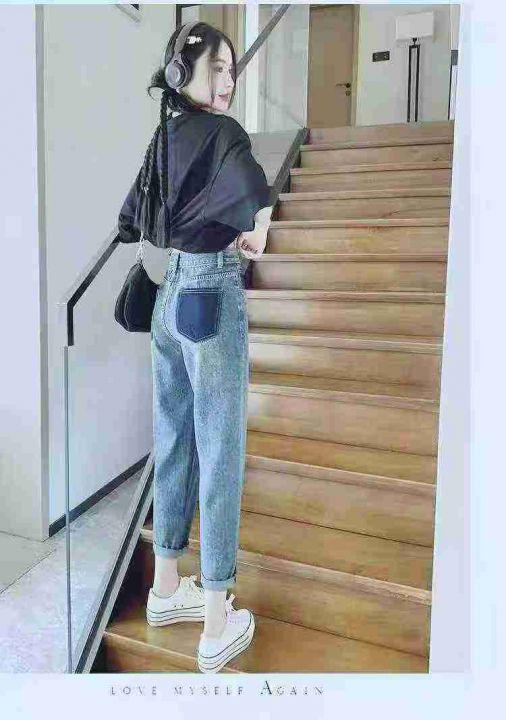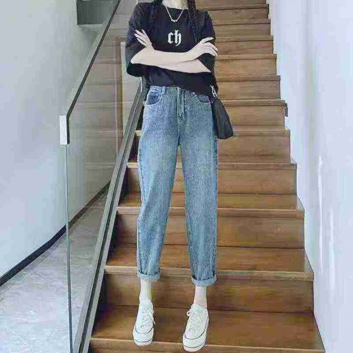 网店下架新款高品质洗水高腰宽松显瘦牛仔老爹哈伦裤,...