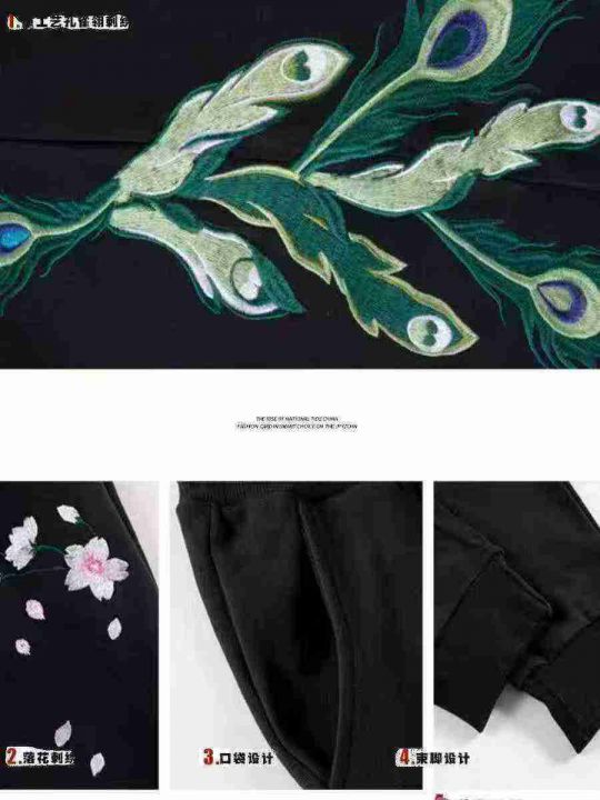 480条国潮刺绣纯棉毛圈大码男装束脚卫裤,图1款加绒,...