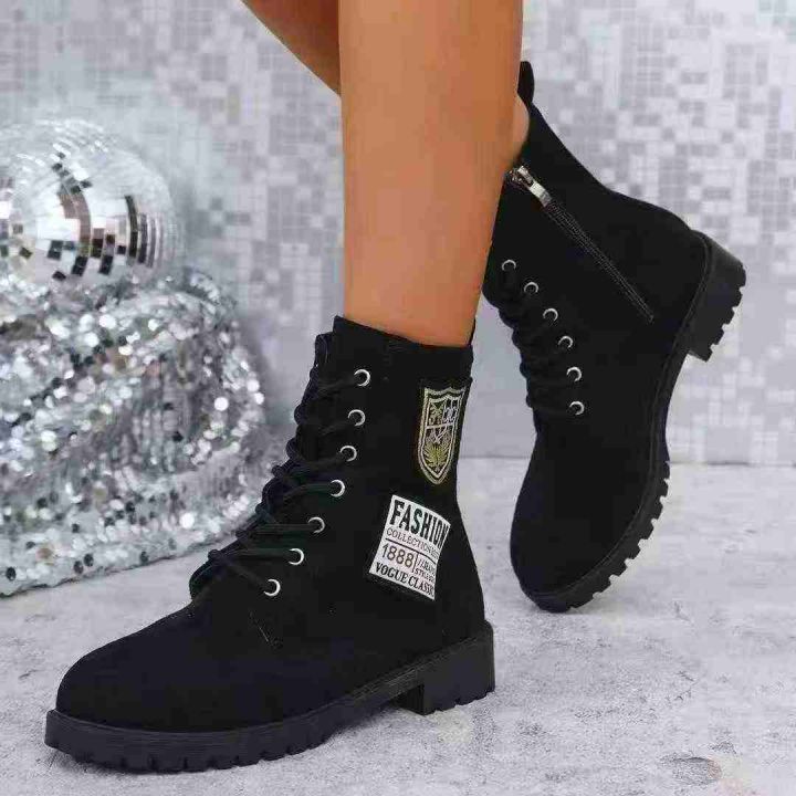 秋季新款马丁靴粗跟防滑女士休闲短筒靴低跟女鞋靴,数...