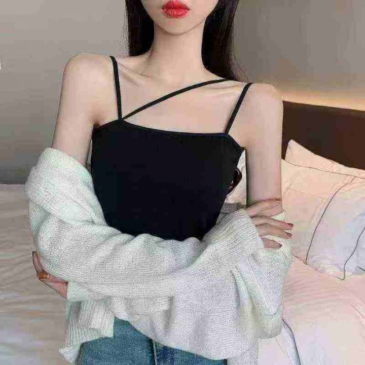 夏季新款性感纯欲风设计款内搭外穿斜肩带挂脖针织吊带背心,独立包装,均码...