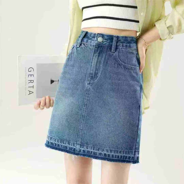 高腰显瘦前开叉牛仔中长款半身裙,单款两色,浅蓝色款多,蓝色少量,数量39...