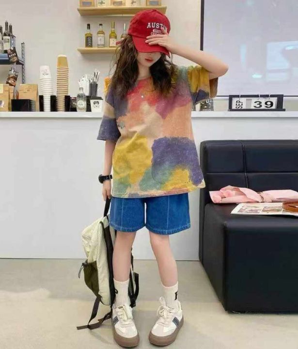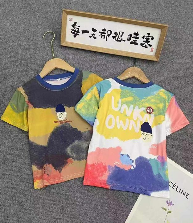 童装扎染短袖1393件3.9,面料有弹力,图案印花,码数9...