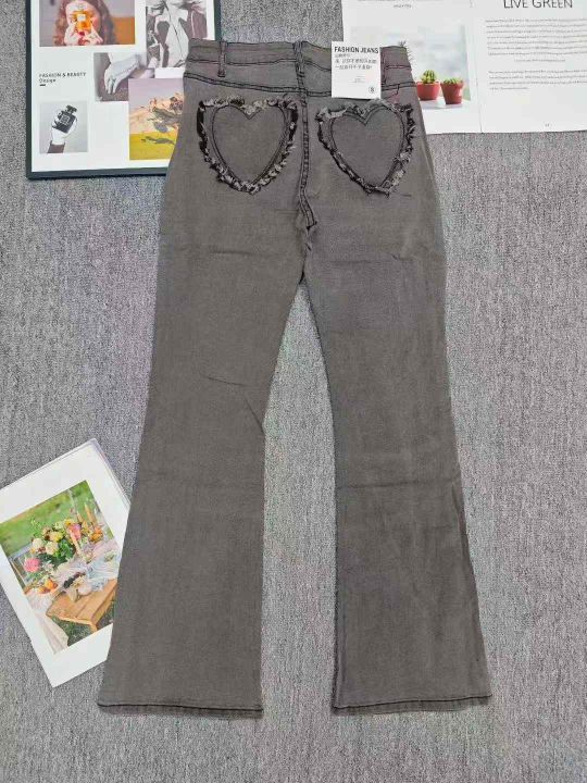 天猫仓回收1258件网红爆款复古设计感灰色显瘦弹力高腰微喇牛仔裤,码数S-XL。面料柔软舒适,刚做出来的新货,背后口袋爱心设计,版型显高显瘦显身材,全部原包装。分货➕1。 货号:1323