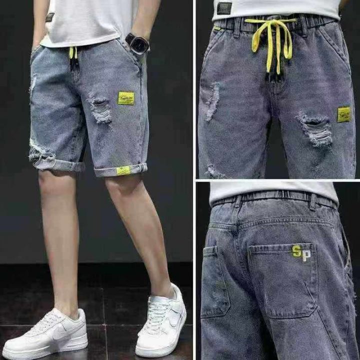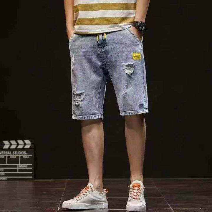 夏季新款洗水棉网红松紧腰男士牛仔短裤,独立包装带腰...