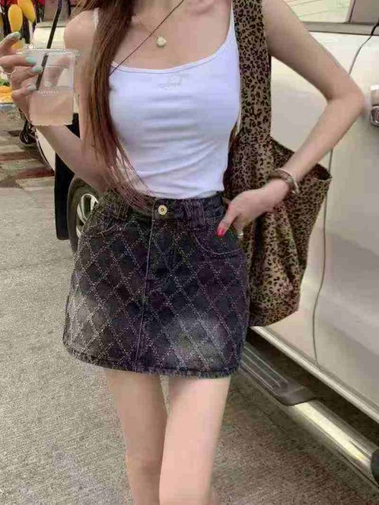 高腰辣妹牛仔短裙☕️219条全清8.8元,码数S到XL ,独立包装,夏季新款显瘦显高个性磨破菱格百搭时尚牛仔半身裙