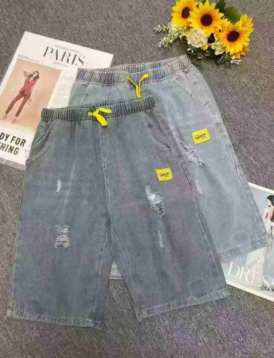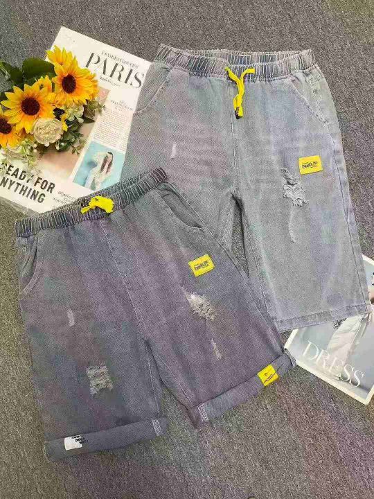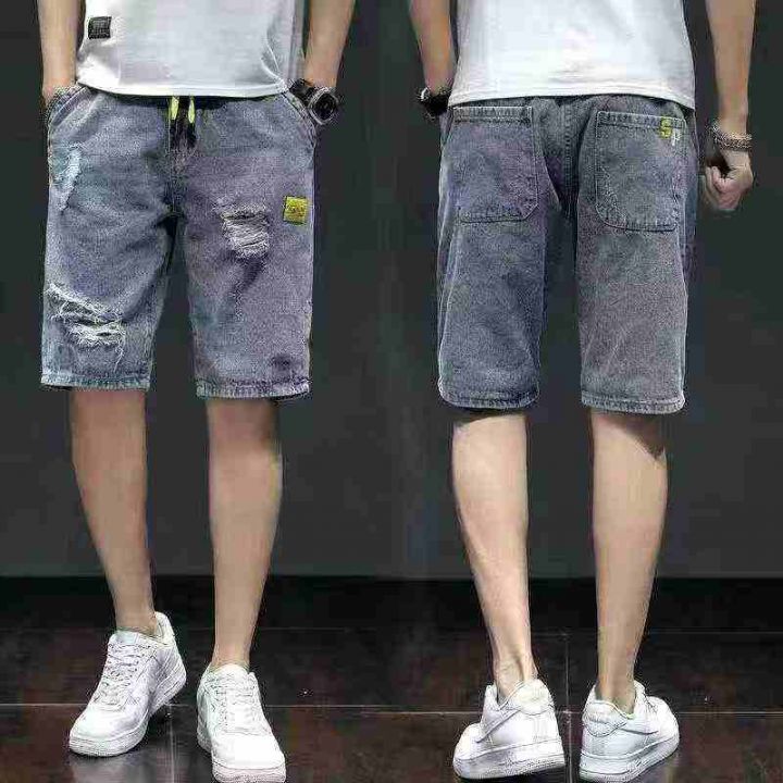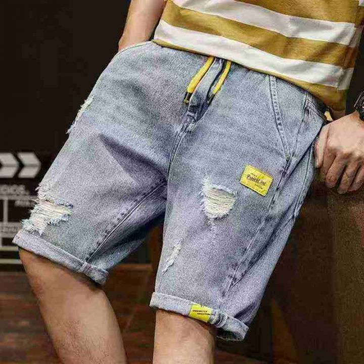 夏季新款洗水棉网红松紧腰男士牛仔短裤,独立包装带腰...