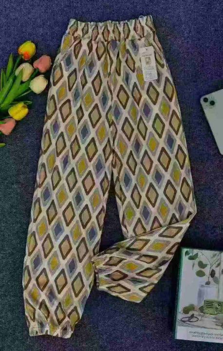 中大童时尚印格冰丝裤,面料冰爽丝滑垂感有弹力,98件...