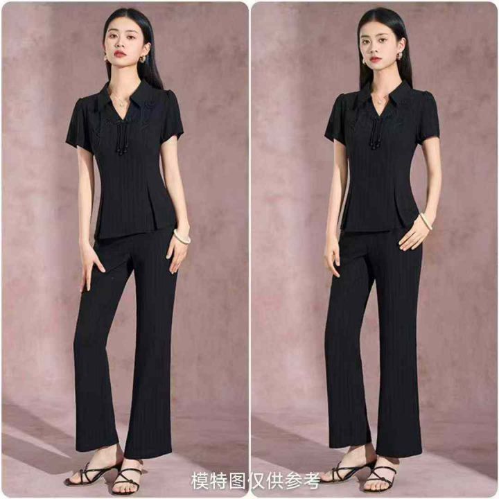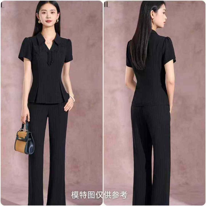 电商仓回收519套气质国风改良新中式条纹翻领短袖长裤套装,码数2-4-6码。面料柔软有弹力,款式新颖,货品干净,有独立包装,分货➕0.5。 货号:1323